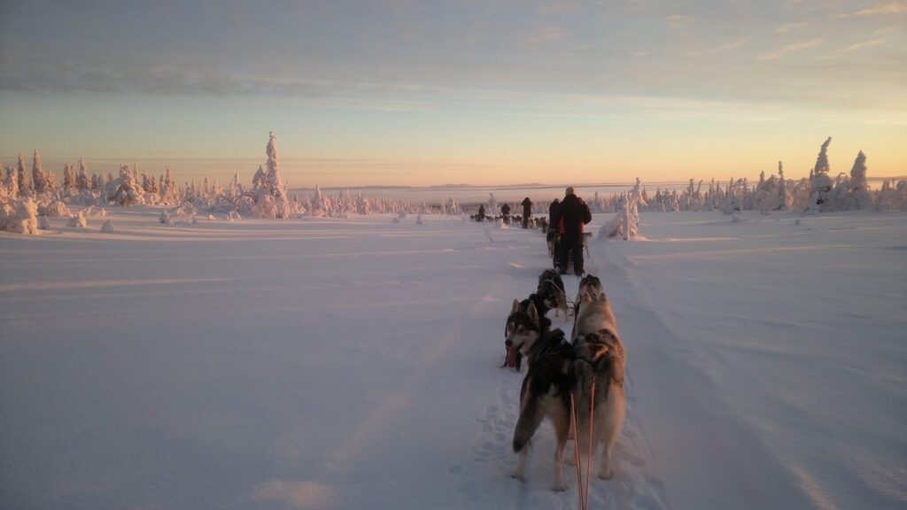 Al onze Huskysafari’s zijn altijd onder begeleiding van een enthousiaste en ervaren gids. De meeste van onze tochten gaan door het unieke Riisitunturi Nationaal Park. Onze gidsen maken geen gebruik van sneeuwscooters gedurende de Huskysafari, wij begeleiden jullie met ons eigen team van Husky’s, zodat de stilte niet verstoord wordt. (Ps.: Wij spreken Engels)