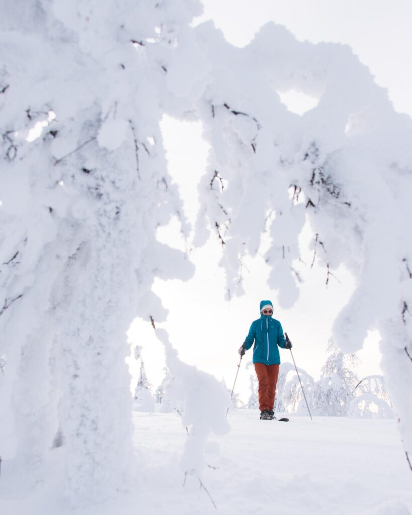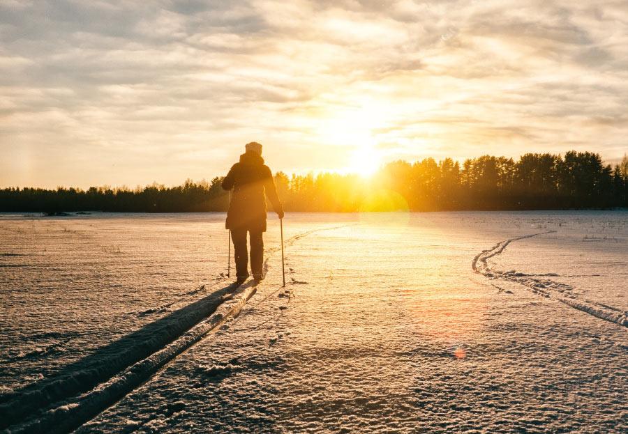 Skiën is voor ons de mooiste manier om de stilte en schoonheid van deze omgeving te ervaren en we delen dat graag met jou. Met diepe wortels in de Finse geschiedenis was skiën ooit de enige manier om door het winterse landschap te reizen. Tijdens onze tochten gebruiken we skin-based ski’s, die extra grip geven en het mogelijk maken om in alle rust en stilte door de natuur te glijden.