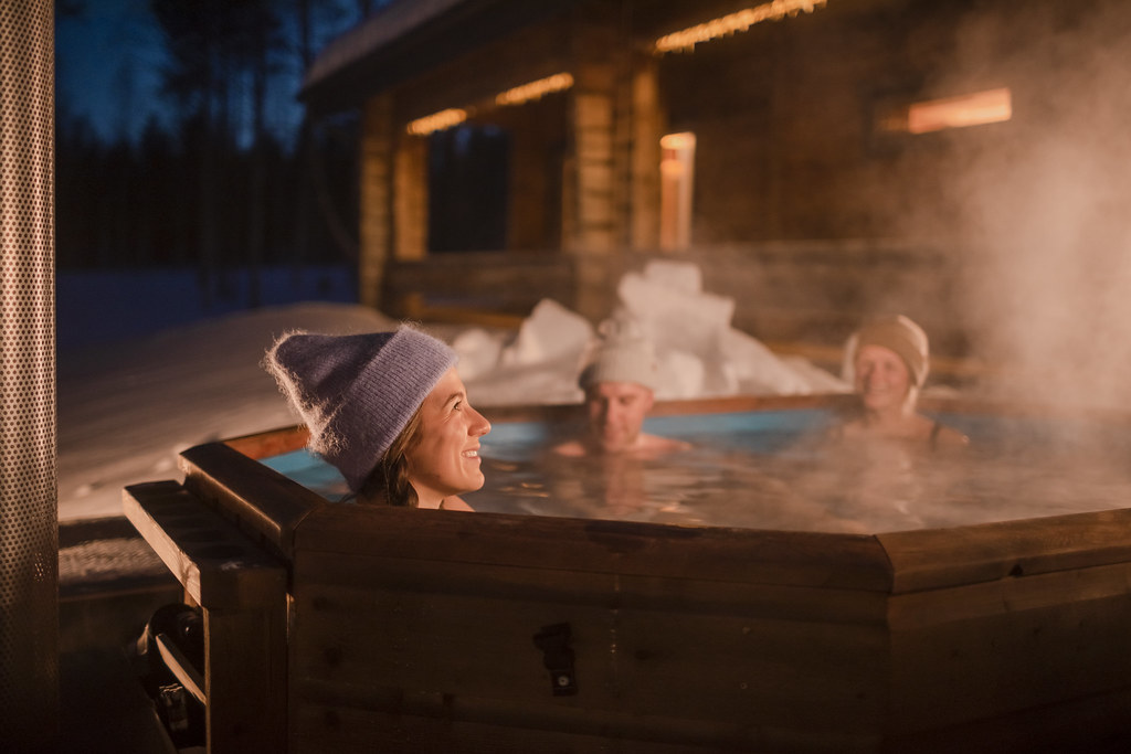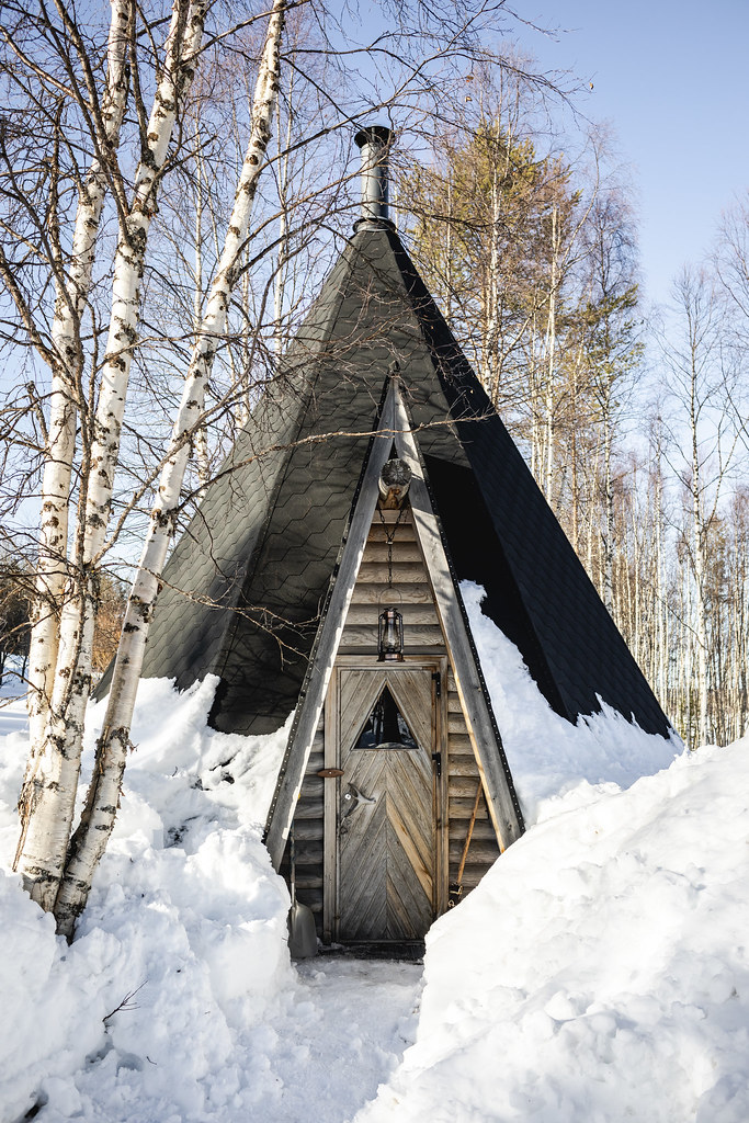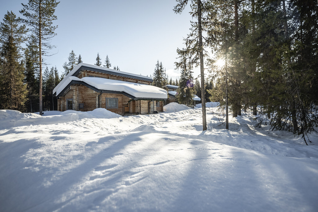 - Één van de sfeervolle houten Aihki Lodges met privé-sauna, voor extra privacy en ontspanning.