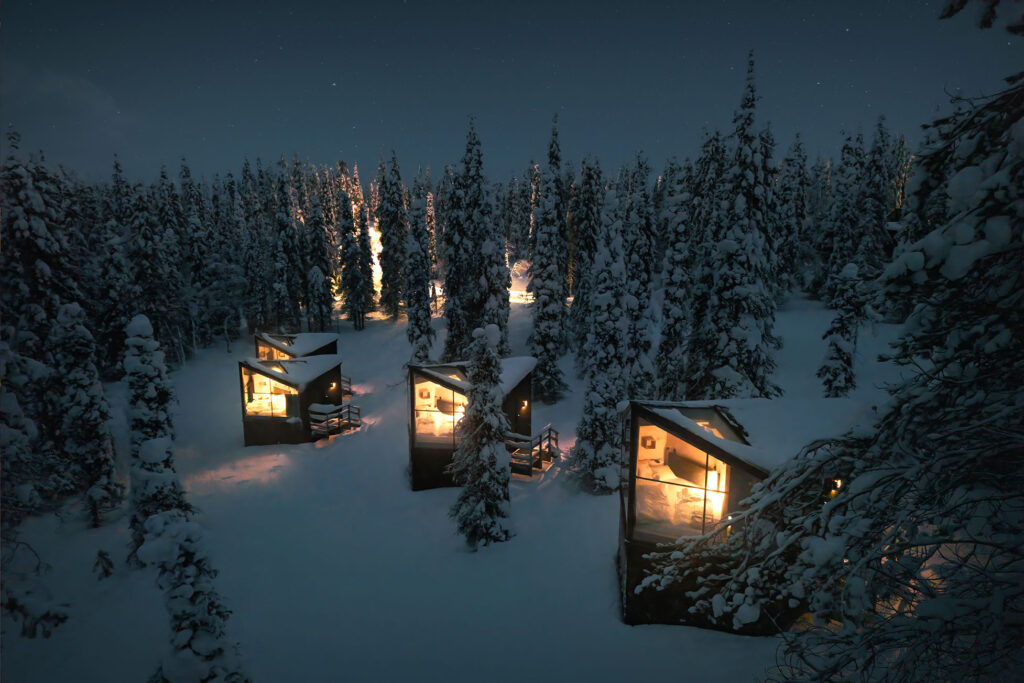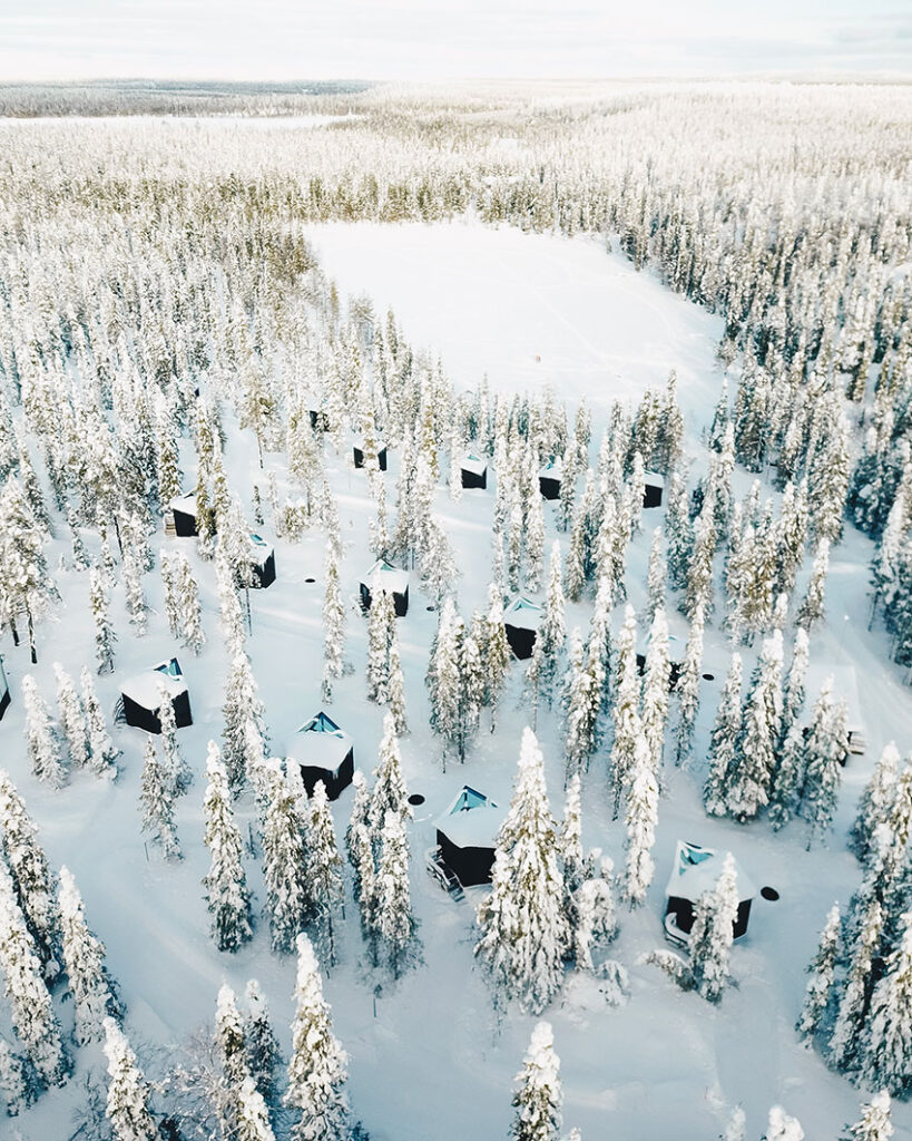 Het vooraanstaande Finse architectenbureau Kanttia2 heeft de suites zo ontworpen dat ze opgaan in de taigawouden. Iedere vierkante meter is zorgvuldig gepland, zodat je op de meest comfortabele manier van de schoonheid van de natuur kunt genieten. Zo beschikt jouw suite over een groot venster van glas en is het dak deels van glas zodat jij optimaal kunt genieten van het uitzicht over de directe omgeving, op de sterrenhemel en het Noorderlicht mocht deze de hemel kleuren.
