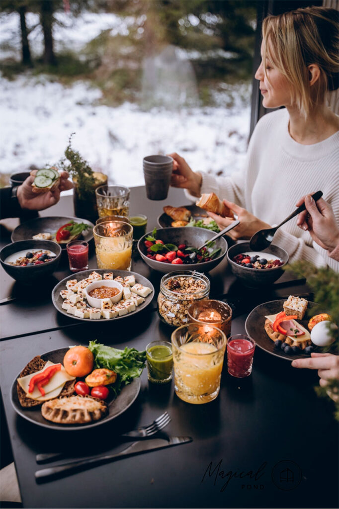 Het kleinschalige resort beschikt over 20 Noorderlicht Suites. Daarnaast vindt je er een in 2021 gebouwd kleinschalig restaurant/receptie waar je tijdens jouw verblijf kunt genieten van het heerlijke ontbijt en smaakvolle driegangendiners van lokale producten zoals bessen, paddenstoelen en kruiden uit de omliggende wouden, vis uit de nabijgelegen meren en rivieren, rendier van de lokale rendierhoeders en wild uit Lapland. In dit nieuwe gebouw worden tevens sauna arrangementen aangeboden.