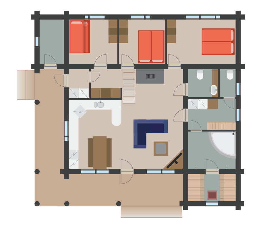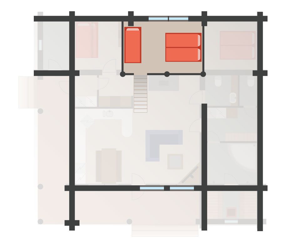 De Loghouse is gebouwd van eeuwenoude “kelo”-stammen – verweerde boomstammen die door zon, wind en sneeuw hun zilvergrijze kleur en karakteristieke uitstraling hebben gekregen. Deze bijzondere bouwstijl geeft de villa een unieke, warme sfeer waarin traditie en natuur samenkomen.