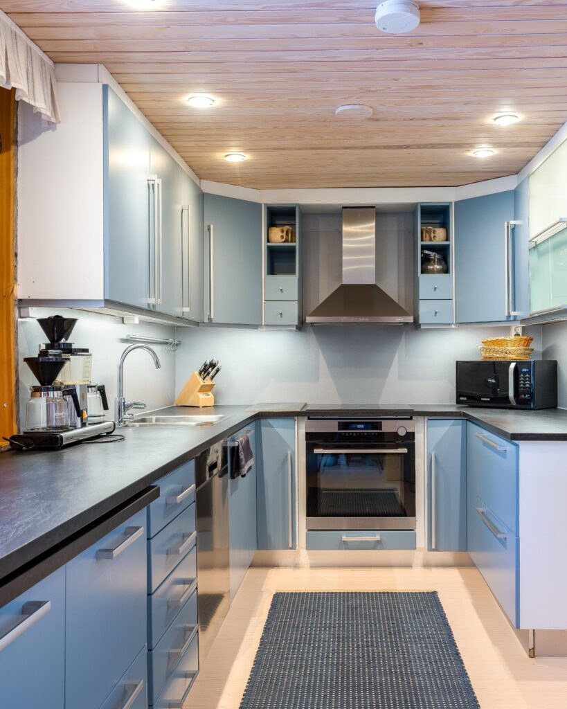 Kook in een moderne keuken met alles erop en eraan: van dubbele koffiezetters tot messen die wél snijden. Met prachtig Iittala-servies en sfeervolle kandelaars dek je elke avond weer een tafel vol verhalen. Na een actieve dag trek je je terug in de Finse sauna met ruime douchegelegenheid. Ook zijn er drie toiletten, zodat iedereen z’n eigen ruimte heeft. Vanaf het balkon, verwarmd met infraroodpanelen, geniet je van het uitzicht op jouw winterse omgeving.