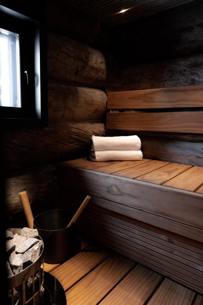 Binnen geniet je van hoogwaardige materialen en comfort. De stijlvol ingerichte woonkamer en de moderne design keuken zijn van alle gemakken voorzien. Op de beneden verdieping bevinden zich twee ruime slaapkamers met twee tweepersoonsbedden. De bedden zijn voorzien van 100% Finlayson gecertificeerde donzen dekbedden en kussens, luxe satijnen lakens en zachte hand- en badhanddoeken. Ook beschikt het huis over een badkamer met toilet, een heerlijke douche en een elektrische sauna. Alles is met oog voor kwaliteit en beleving gekozen.