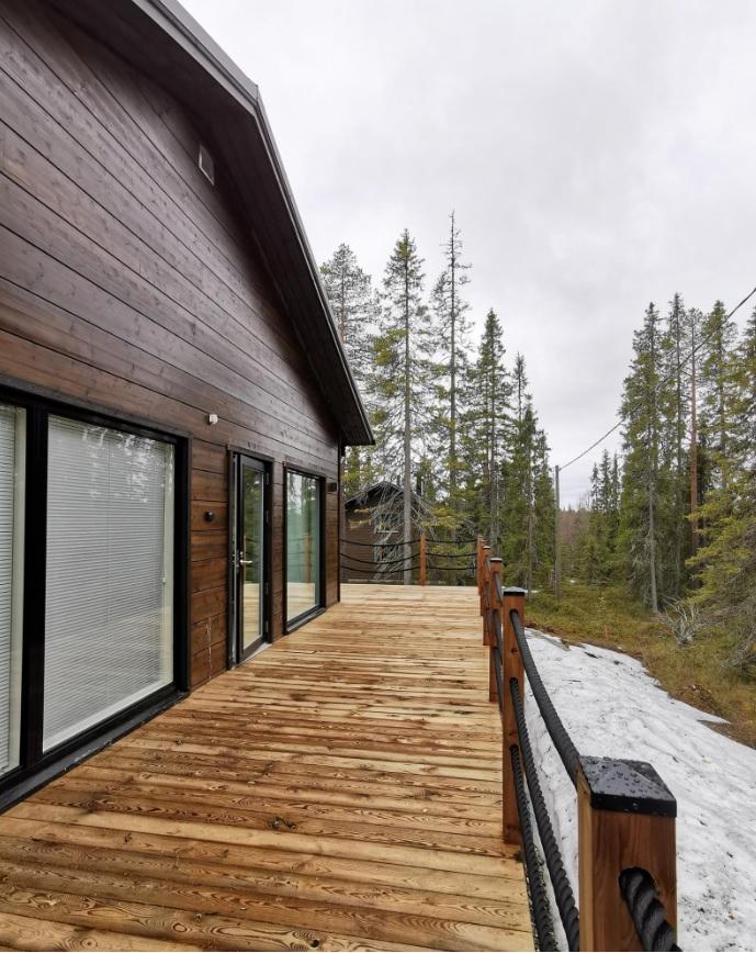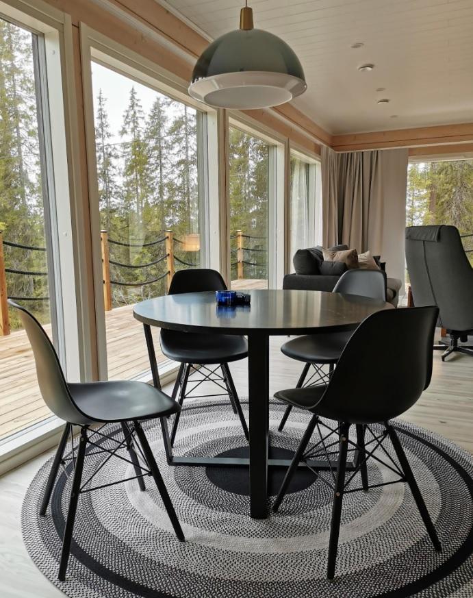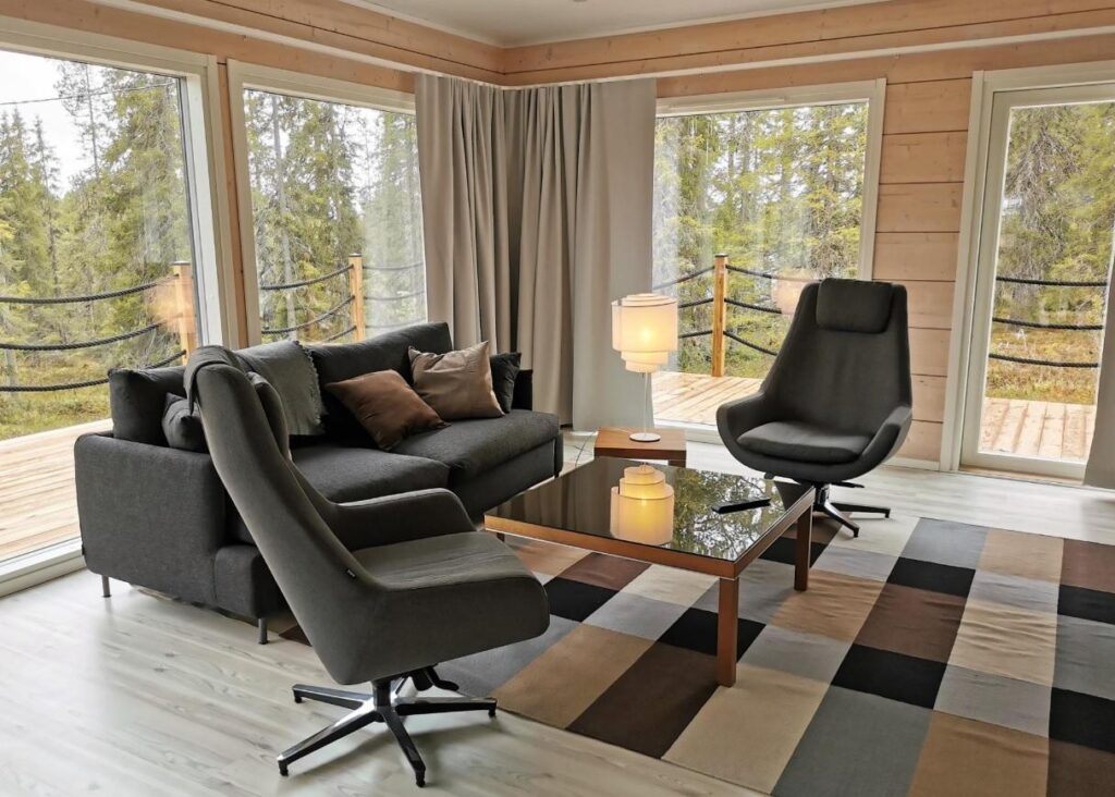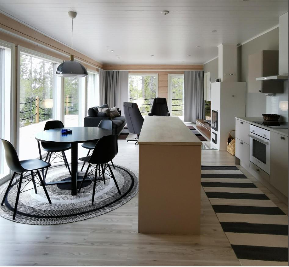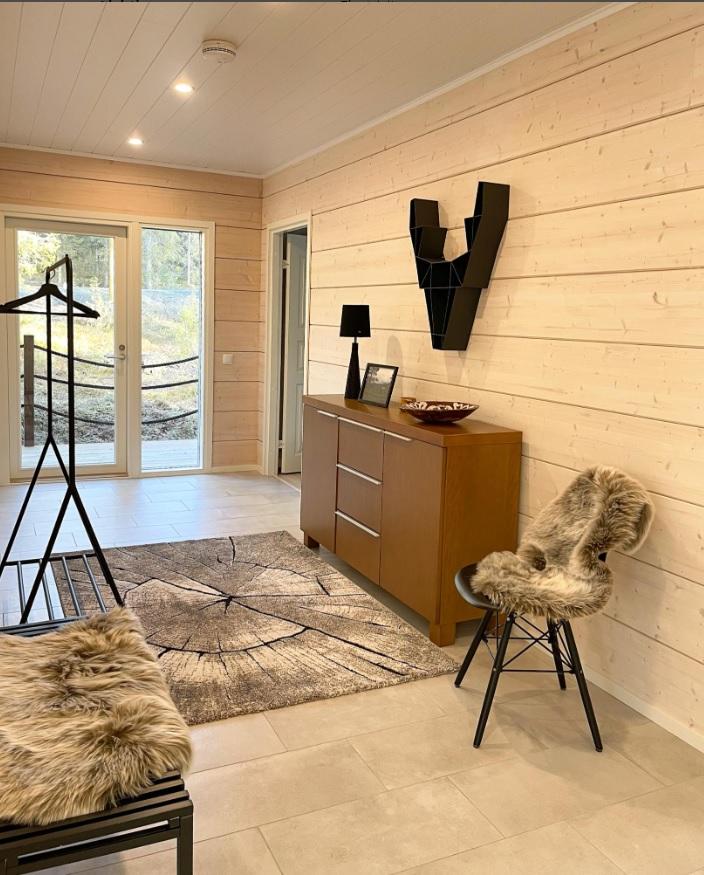 De villa, gebouwd in 2022, ademt Lapland in alles. Robuuste houten balken, grote ramen die het daglicht binnenhalen, en uitzicht op de omringende bomen die ’s winters vaak met een laagje sneeuw zijn bedekt. In de gezellige woonkamer komt jij tot rust op comfortabele banken bij het knapperende haardvuur. De open keuken is compleet uitgerust, zodat je zelf een warme maaltijd kan bereiden na een dag vol winterse ervaringen.