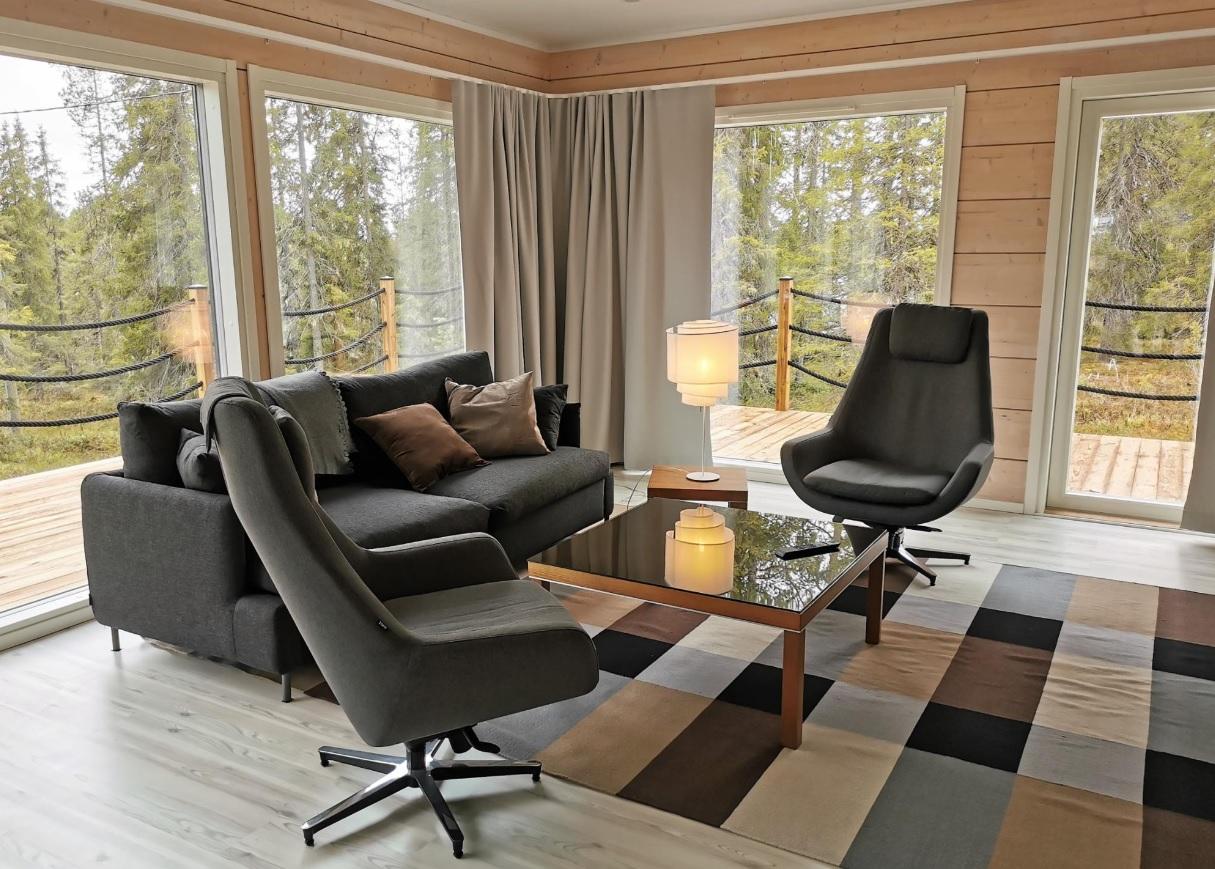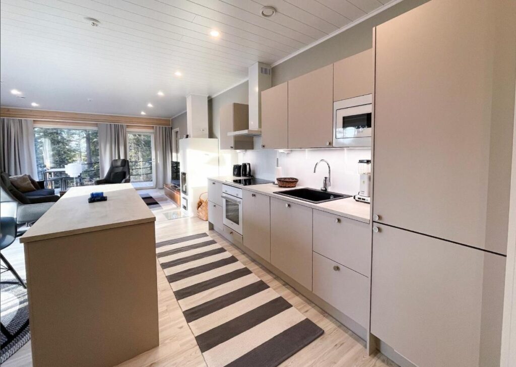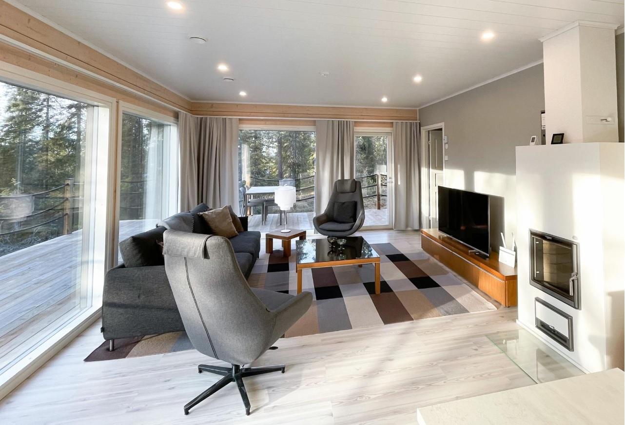 De villa, gebouwd in 2022, ademt Lapland in alles. Robuuste houten balken, grote ramen die het daglicht binnenhalen, en uitzicht op de omringende bomen die ’s winters vaak met een laagje sneeuw zijn bedekt. In de gezellige woonkamer komt jij tot rust op comfortabele banken bij het knapperende haardvuur. De open keuken is compleet uitgerust, zodat je zelf een warme maaltijd kan bereiden na een dag vol winterse ervaringen.