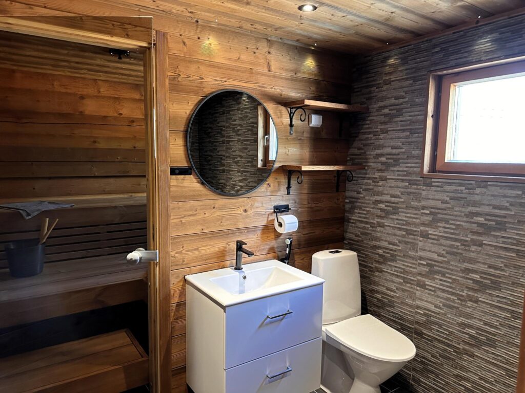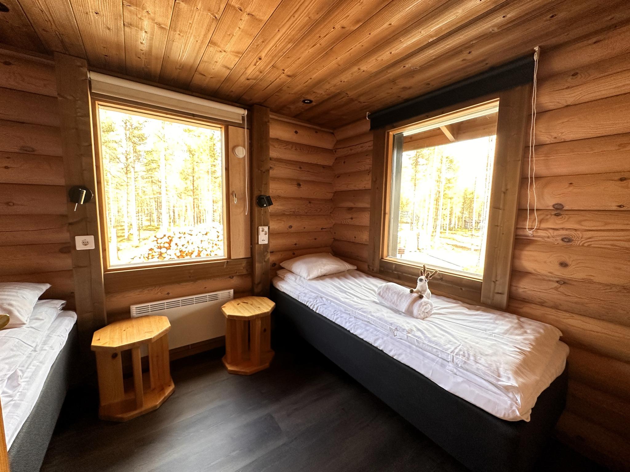 De traditionele houten blokhut biedt plaats aan vier tot vijf personen en ademt de warme, authentieke sfeer die zo kenmerkend is voor Finland. Op de begane grond bevinden zich twee slaapkamers: één met een tweepersoonsbed (160 cm) en één met twee eenpersoonsbedden (80 cm), daarnaast is er op de vide ook nog een slaapplaats tot jouw beschikking.