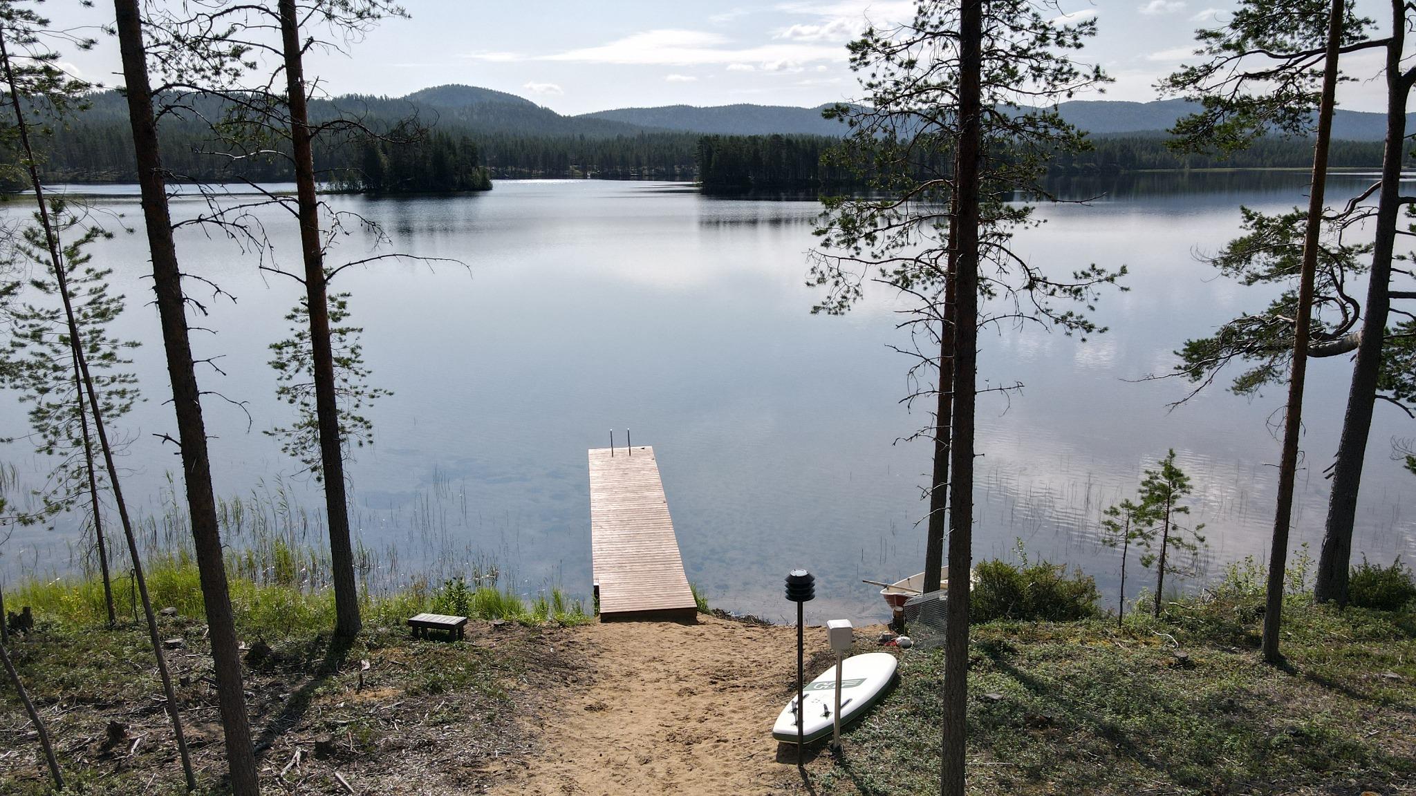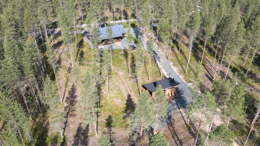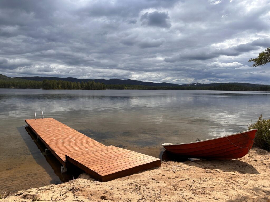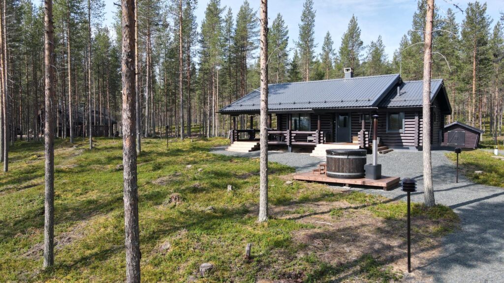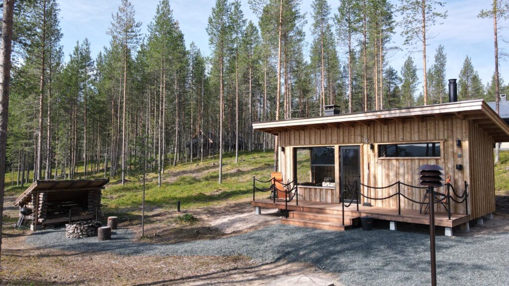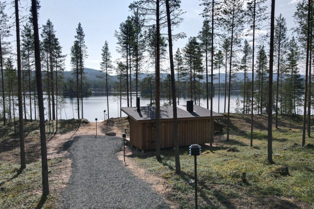Toch voelt de Loghouse als een verborgen plek, ver weg van de drukte. Vanaf de oever van het meer kijkt je uit op de heuvels Konttainen, Valtavaara en Rukantunturi.