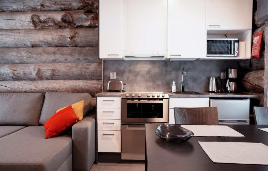 De sfeervolle uit boomstammen opgetrokken Villa’s liggen direct aan de oever van het bevroren meer Iso-Veskajärvi. Boven bevinden zich twee comfortabele slaapkamers, elk met een eigen badkamer – ideaal voor een onbezorgd verblijf. Beneden nodigen de ruime woonkamer, de goed uitgeruste keuken en de moderne open haard uit tot gezellige avonden samen. In de sauna, met uitzicht over het meer, beleef je de Finse traditie in haar puurste vorm.