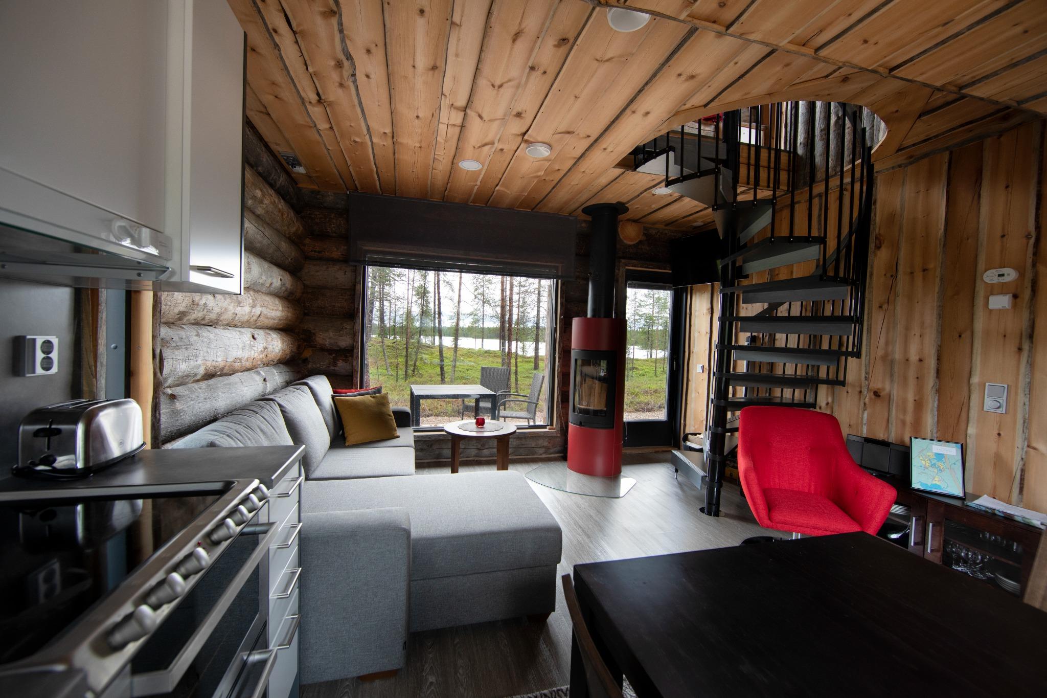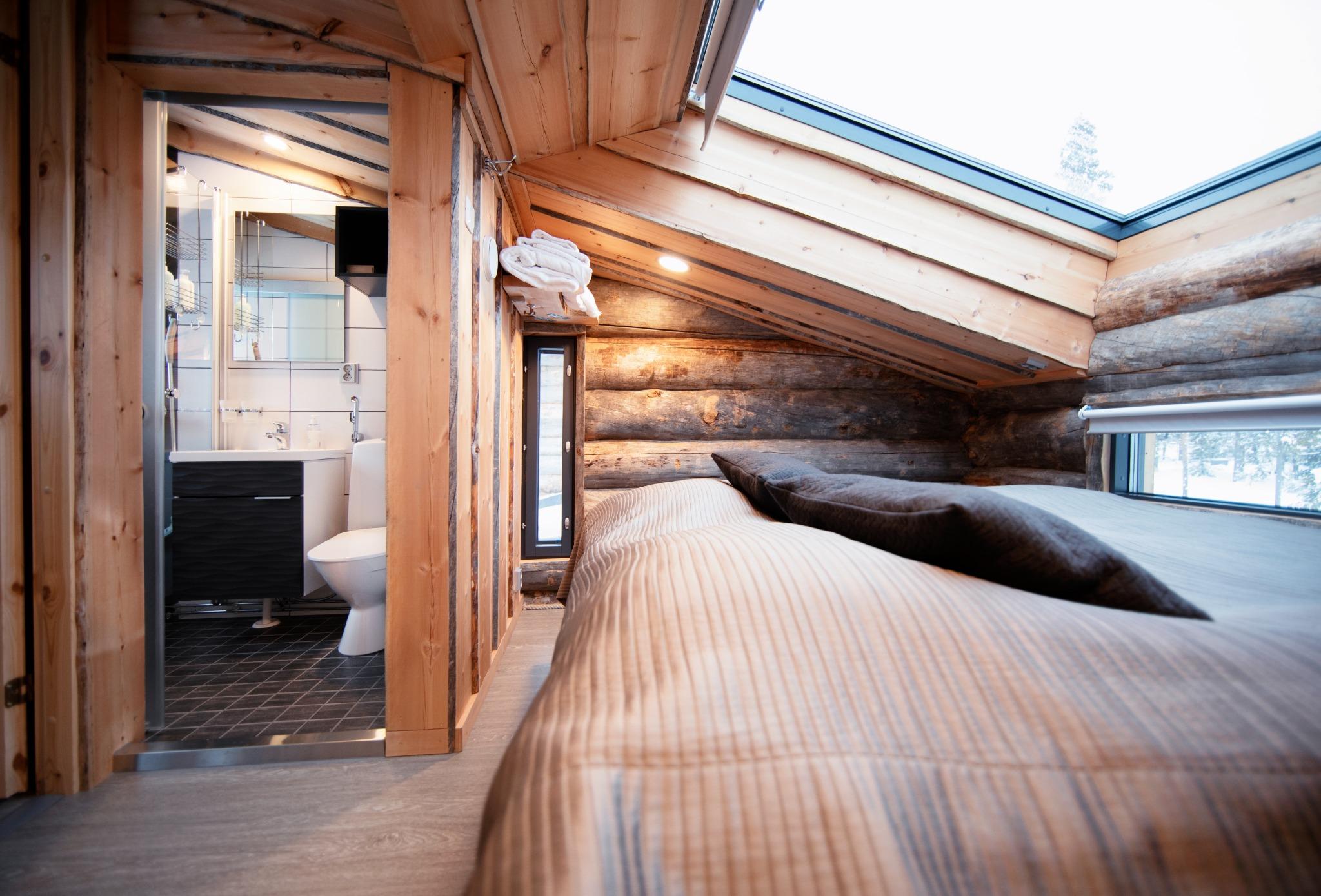 De sfeervolle uit boomstammen opgetrokken Villa’s liggen direct aan de oever van het bevroren meer Iso-Veskajärvi. Boven bevinden zich twee comfortabele slaapkamers, elk met een eigen badkamer – ideaal voor een onbezorgd verblijf. Beneden nodigen de ruime woonkamer, de goed uitgeruste keuken en de moderne open haard uit tot gezellige avonden samen. In de sauna, met uitzicht over het meer, beleef je de Finse traditie in haar puurste vorm.
